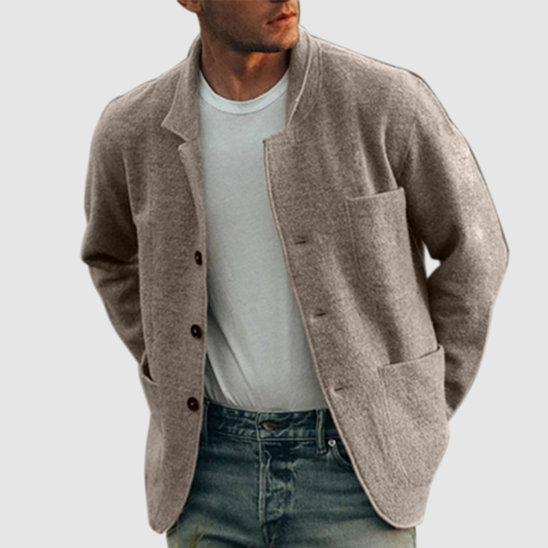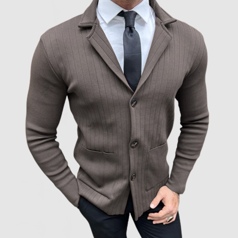 Men's Elegant Lapel Long Sleeve Striped Knit Jacket