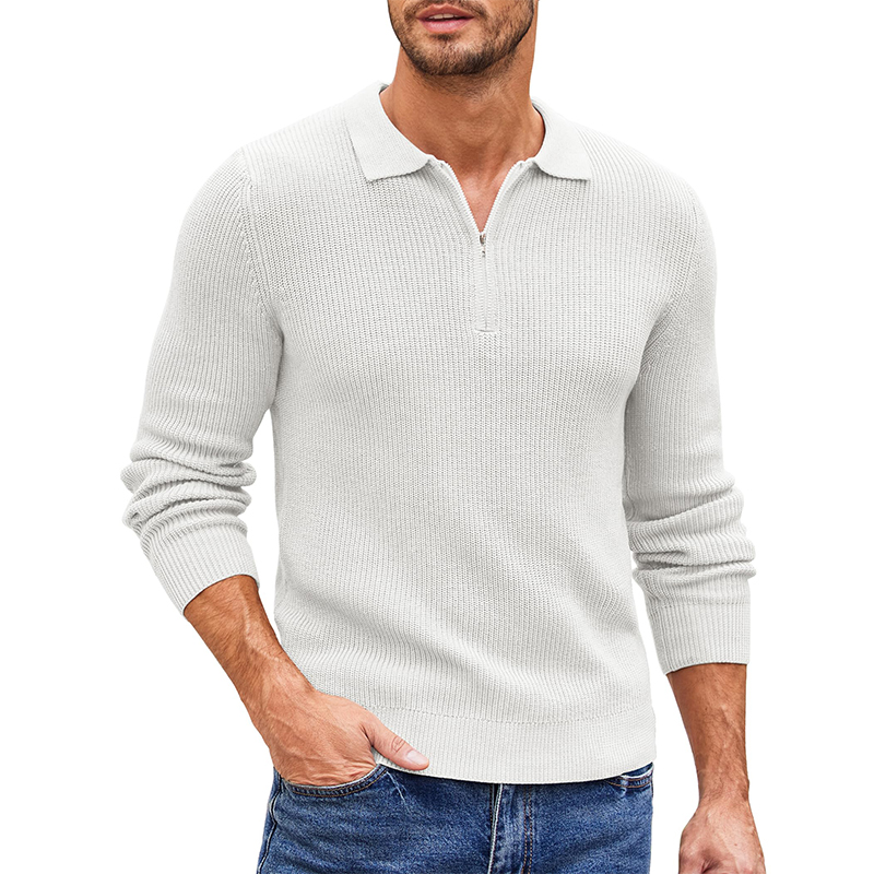 Men's Zip Long Sleeve Casual Knit Polo Sweater