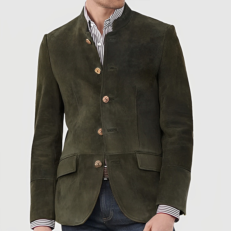 Men's new cardigan solid color casual standing collar long sleeve shirt