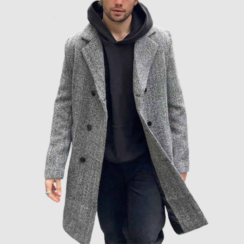 Men's Retro Lapel Double-Breasted Herringbone Woolen Coat