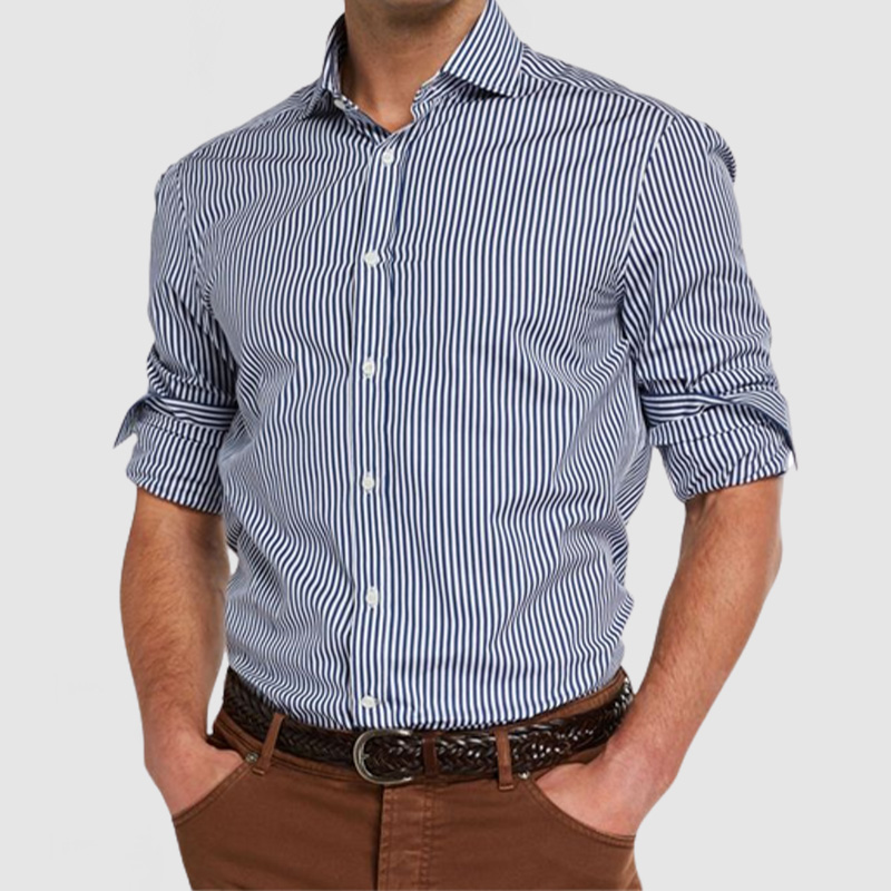Men's Elegant Basic Striped Long Sleeve Shirt