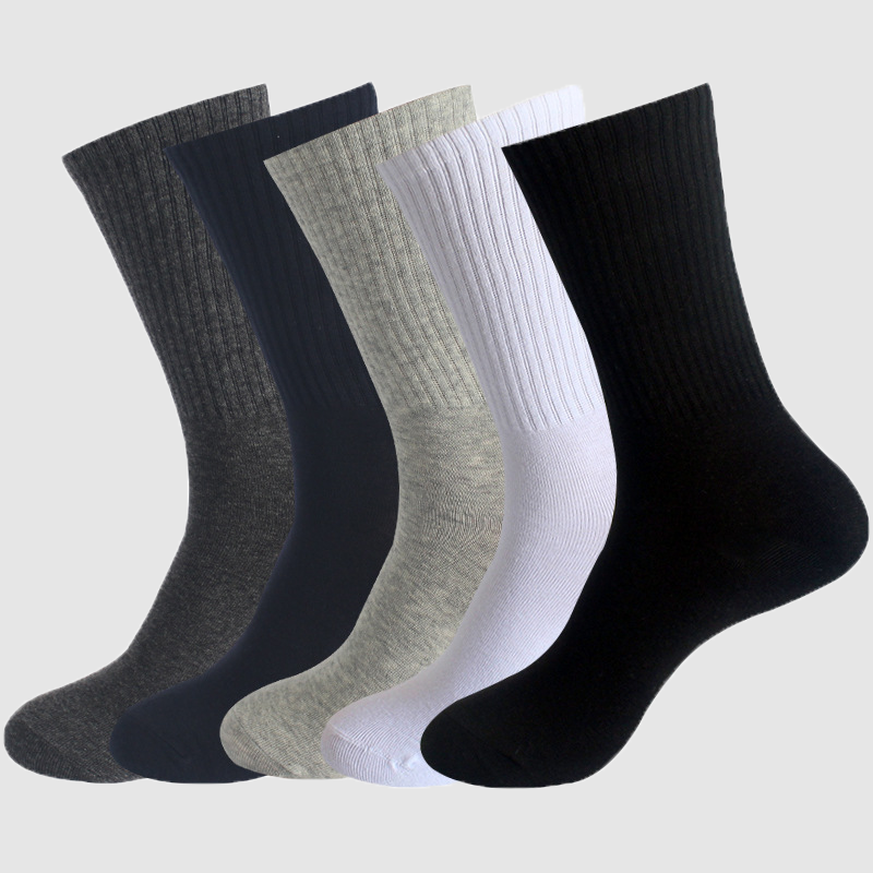 Men's socks autumn and winter high rubber tendon leg socks men's running socks large size solid color medium tube socks