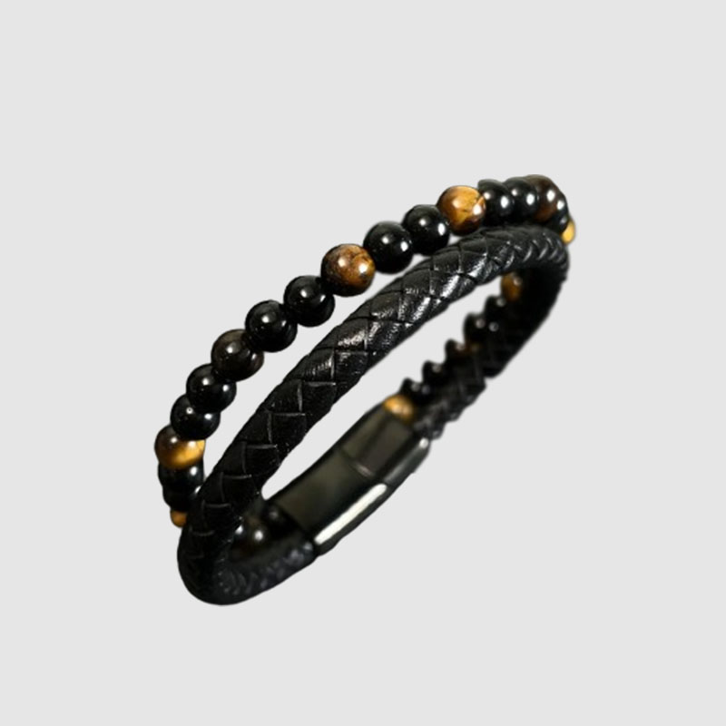 Summer Men's Tiger Eye Stone Bracelet Handwoven Leather Bracelet