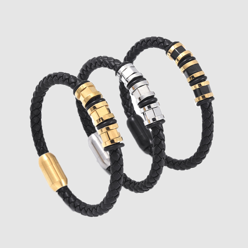 Fashion stainless steel magnetic suction buckle bracelet cowhide woven leather bracelet male