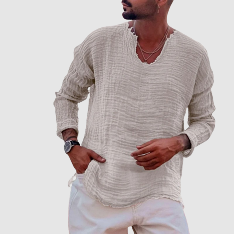 Men's Comfortable Breathable Cuban Casual Button Up Long Sleeve Beach Linen Shirt