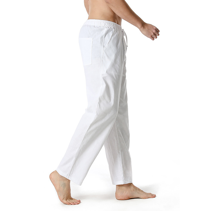 These men's linen pants are made of linen cotton fabric. The skin-friendly soft fabric provides smooth, low-friction performance.