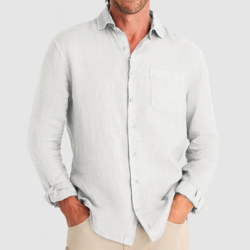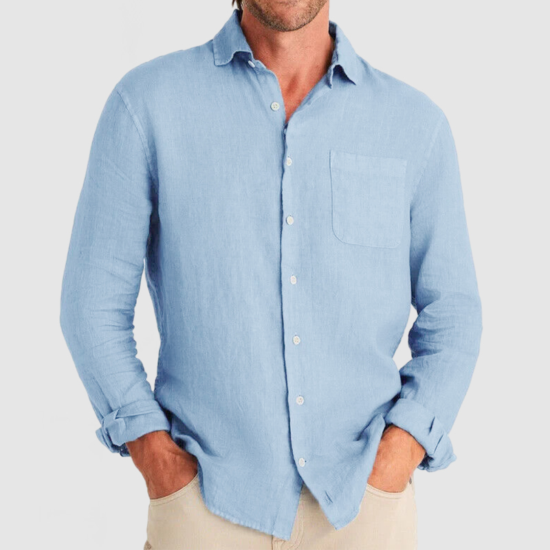 This shirt has a business-casual style element and is made from Cotton And Linen, which is extremely breathable. The sharp, tailored design of the collar and sleeves with sleek white buttons makes this shirt simple and uncluttered! This shirt goes well with any outfit, which will all be the finishing touch! Whether for outdoor sports, leisure activities or social gatherings, this shirt will keep you elegant and gentlemanly for a long time.