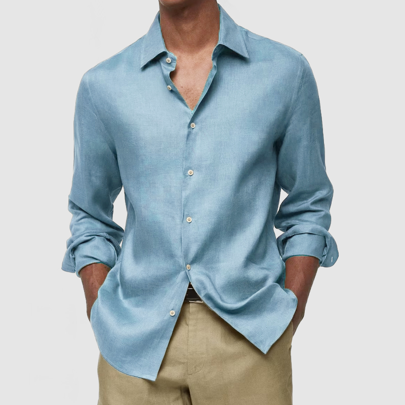 This shirt has a business-casual style element and is made from Cotton And Linen, which is extremely breathable. The sharp, tailored design of the collar and sleeves with sleek white buttons makes this shirt simple and uncluttered! This shirt goes well with any outfit, which will all be the finishing touch! Whether for outdoor sports, leisure activities or social gatherings, this shirt will keep you elegant and gentlemanly for a long time.