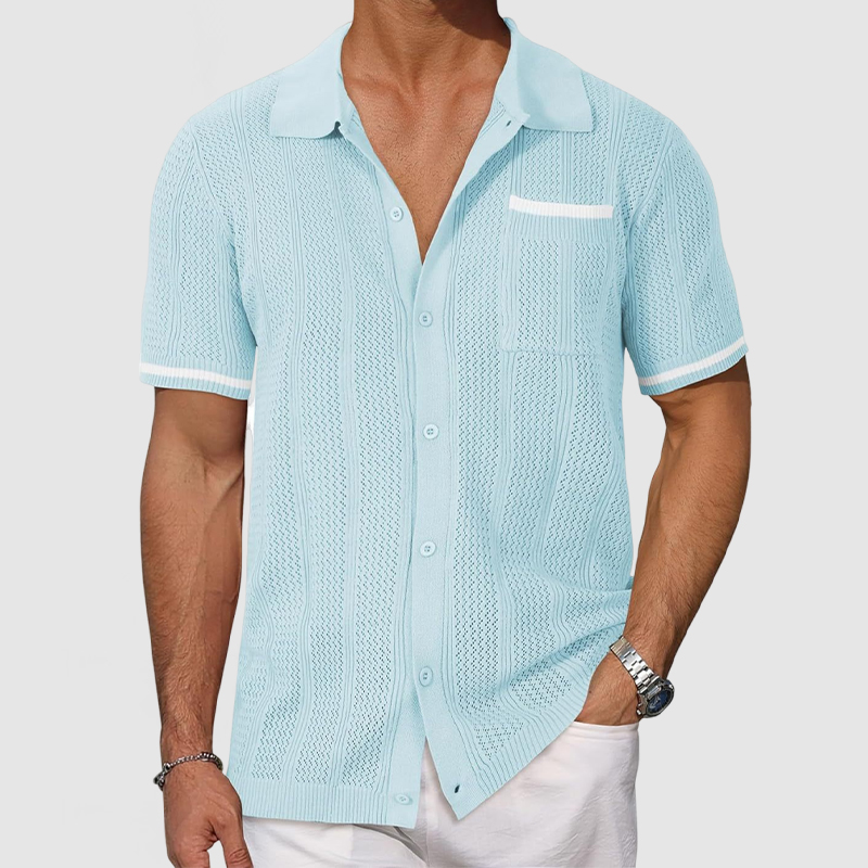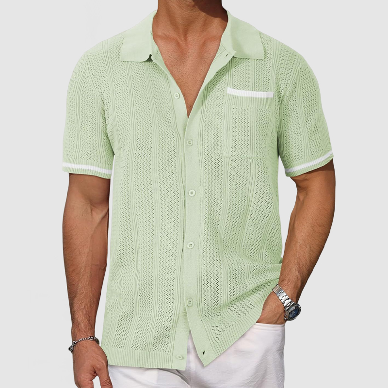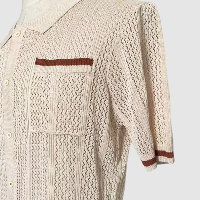 This shirt has a business-casual style element and is made from cotton, which is extremely breathable.This shirt is crafted from a breathable openwork knit fabric that's soft and cool to the touch, making it perfect for summer. The patchwork color blocking is a highlight which will make you stand out from the crowd. Whether for outdoor sports, leisure activities or social gatherings, this shirt will keep you elegant and gentlemanly for a long time.