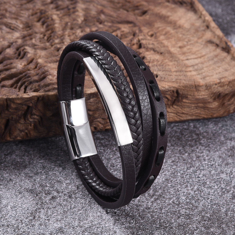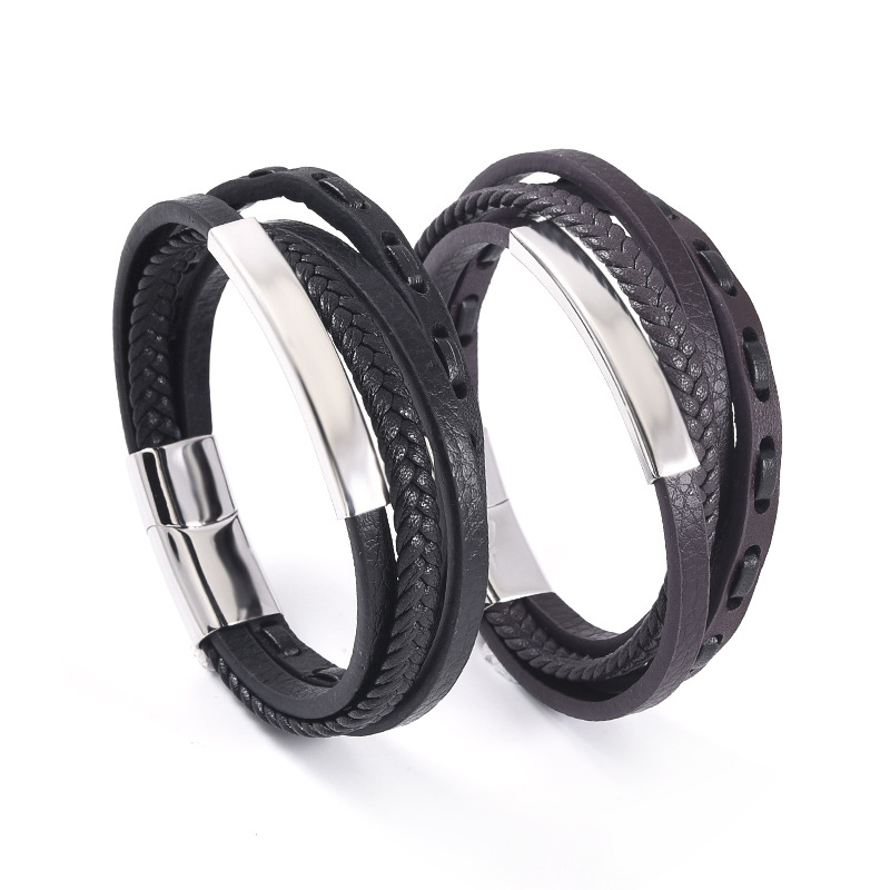 Men belt woven titanium steel bracelet stainless steel leather bracelet