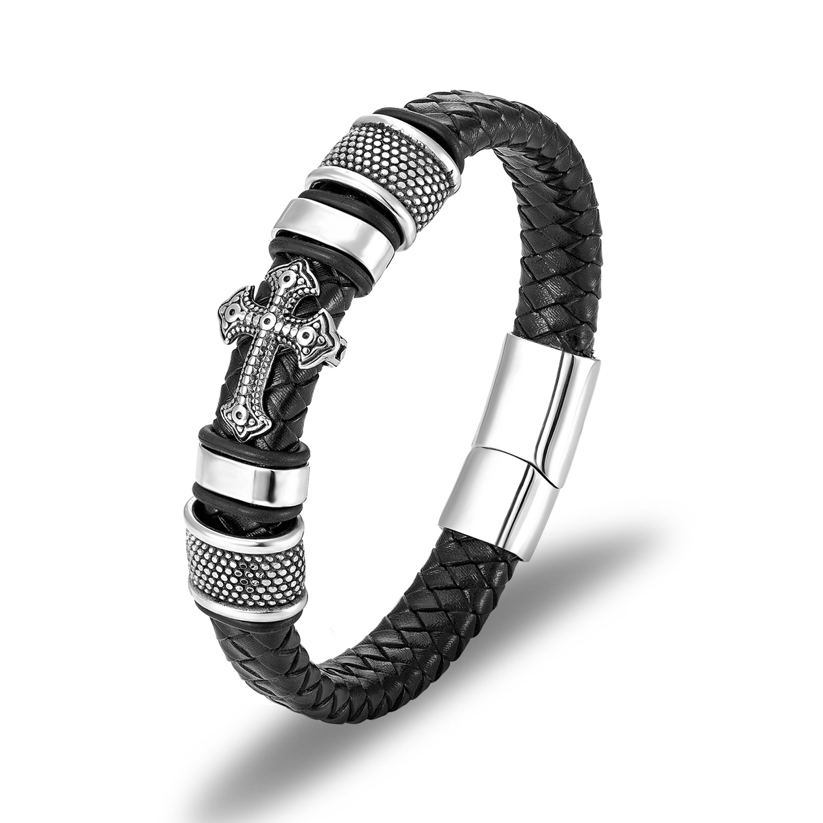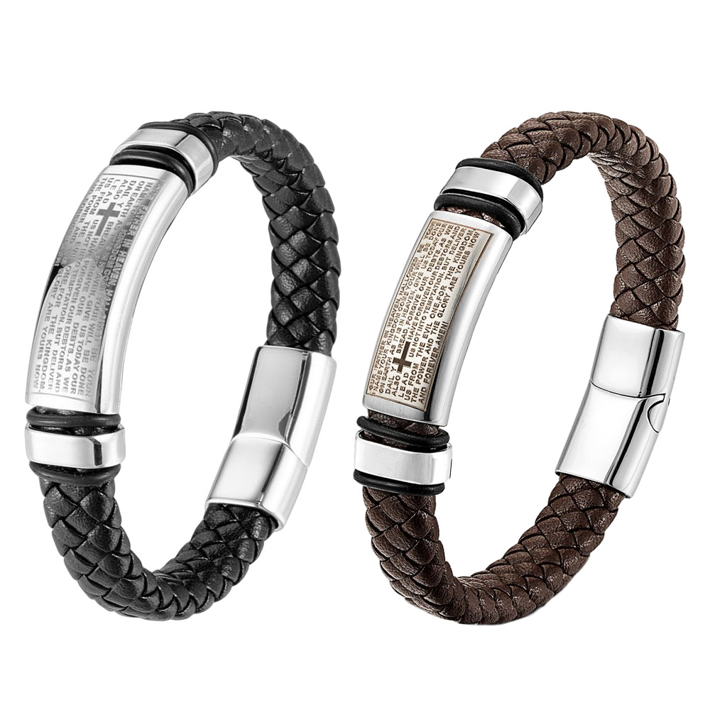 Men Leather Bracelet Cross Stainless Steel Leather bracelet gift bracelet