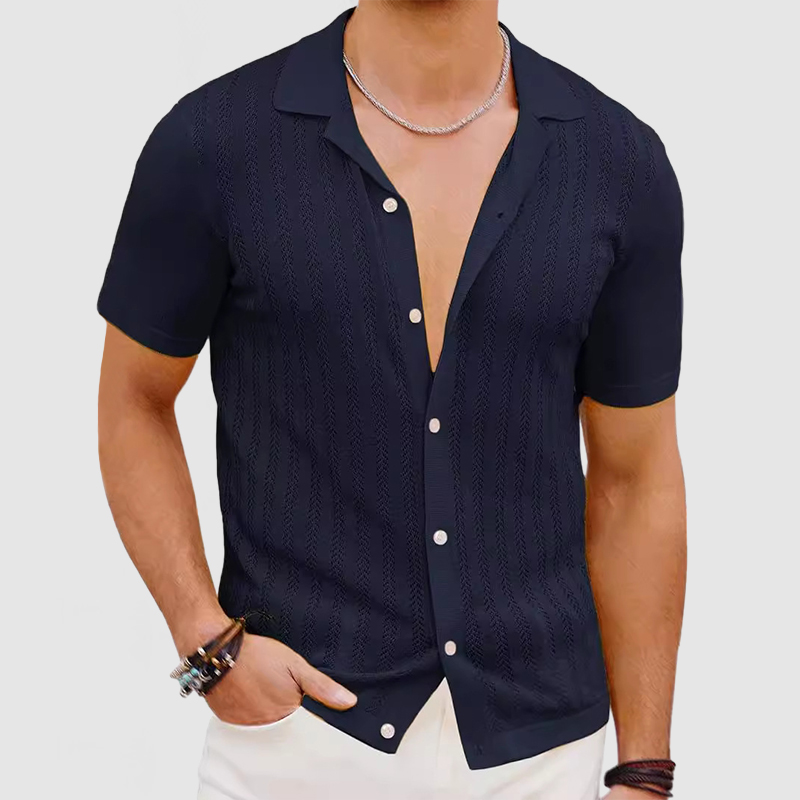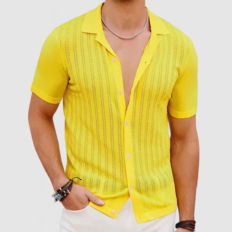 This shirt has a business-casual style element and is made from cotton, which is extremely breathable. This shirt is crafted from a cool-feeling knit fabric. The partial cutouts make this shirt more breathable and comfortable to wear. Whether for outdoor sports, leisure activities or social gatherings, this shirt will keep you elegant and gentlemanly for a long time.