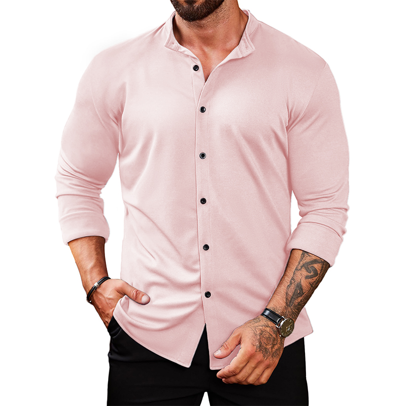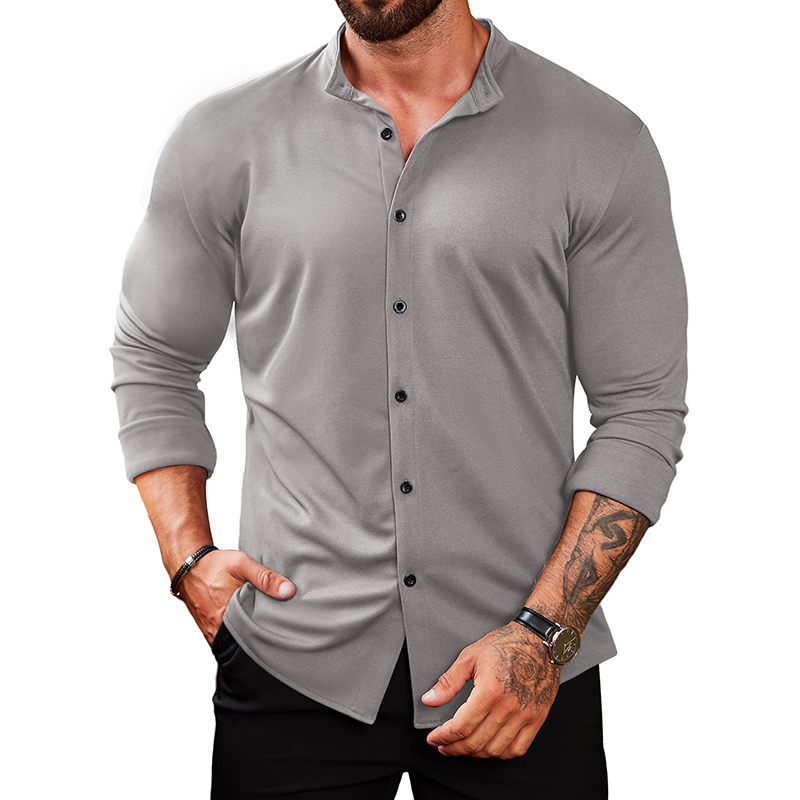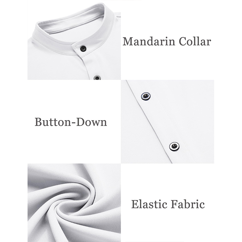Collarless Shirts is featured with long sleeve,band collar, muscle fit, button closures and a solid color. The simple and classic design brings more possibilities of matching.