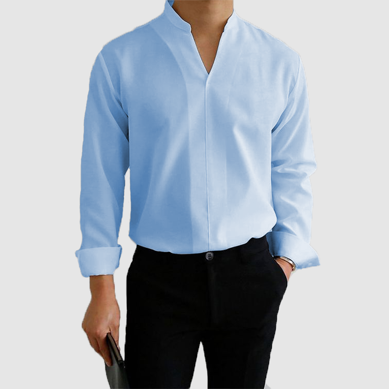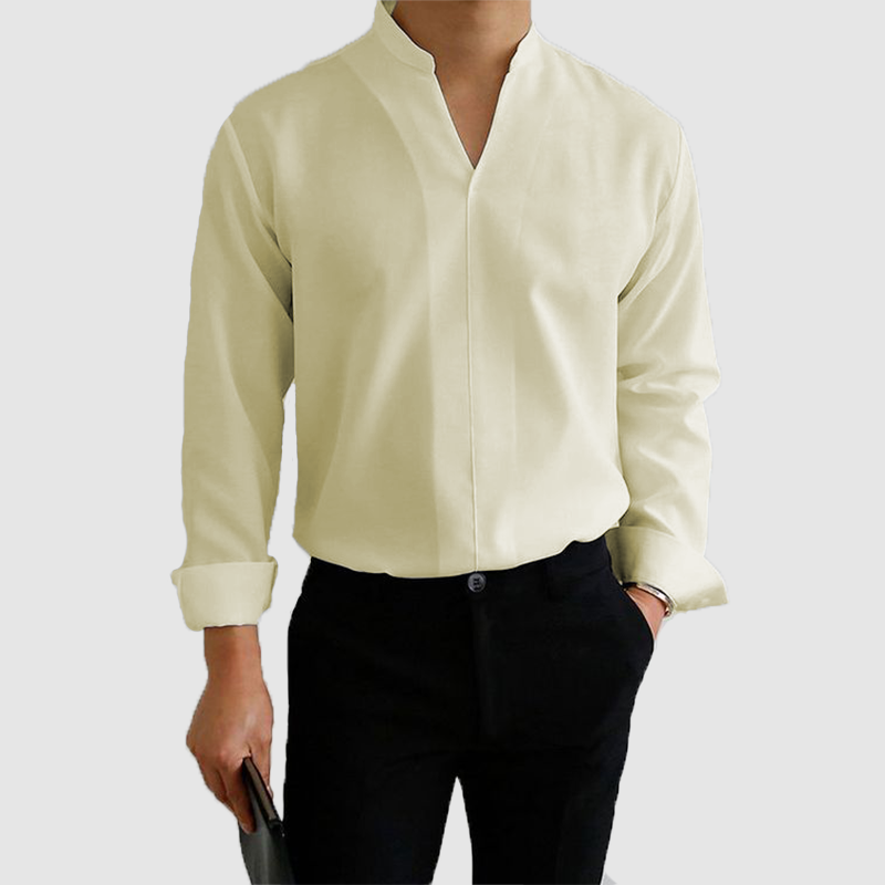 Men's casual shirt solid color hot sleeve long sleeve standing collar men's shirt