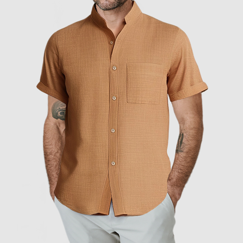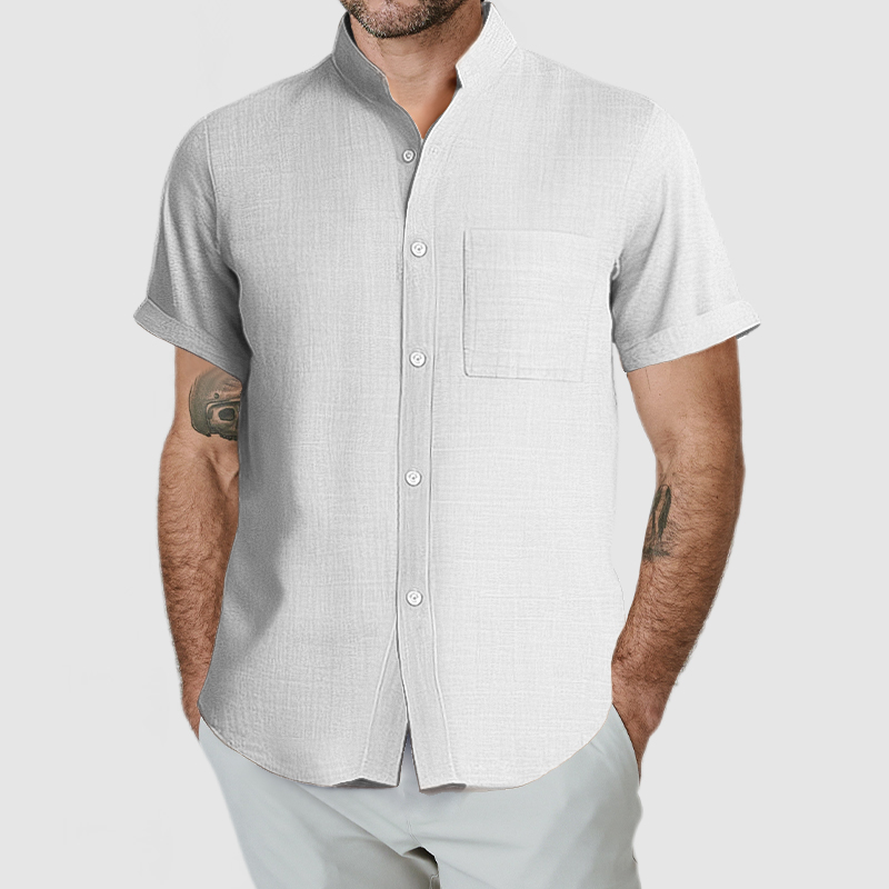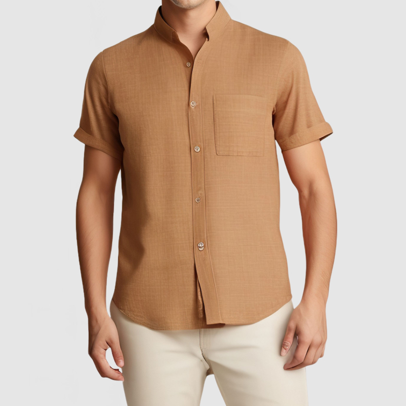 This shirt has a business-casual style element and is made from cotton And Linen, which is extremely breathable. This shirt is crafted from a natural cotton and linen fabric which is comfortable and breathable. The minimalist design of the shirt's collar and pockets is simple yet luxurious, and it will fulfill your daily needs. Whether for outdoor sports, leisure activities or social gatherings, this shirt will keep you elegant and gentlemanly for a long time.