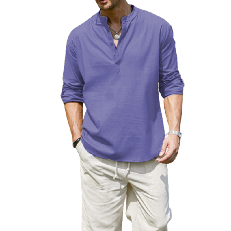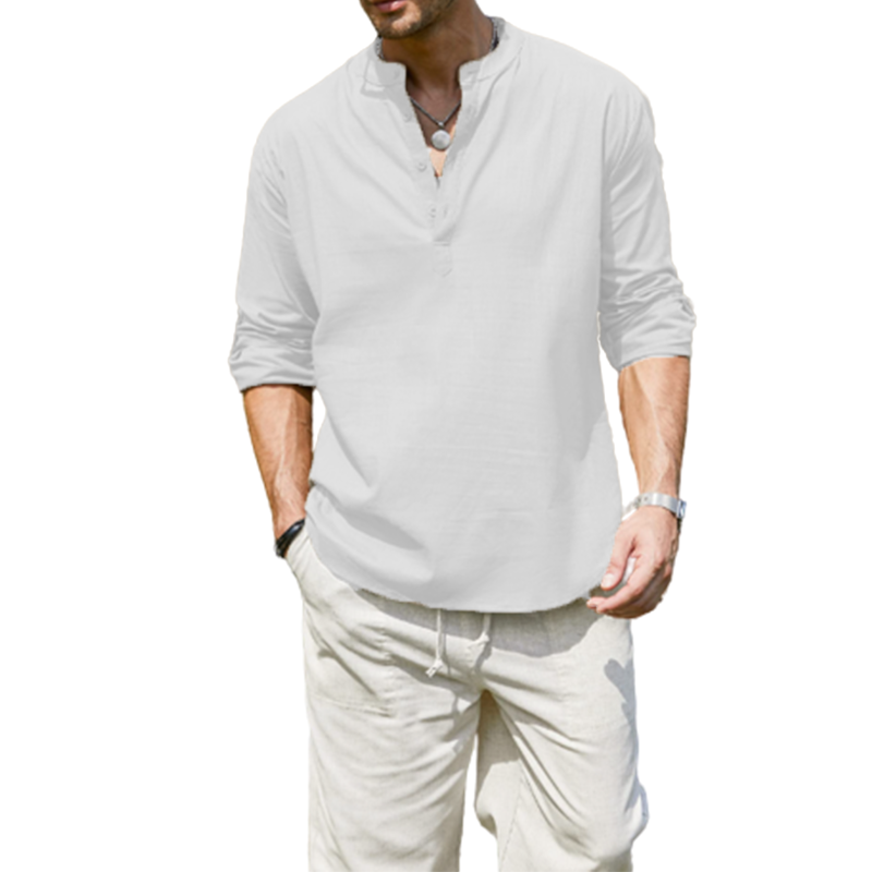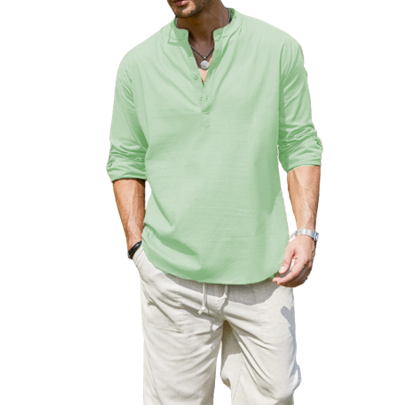 Men's Cotton Linen Casual Long Sleeve Shirt