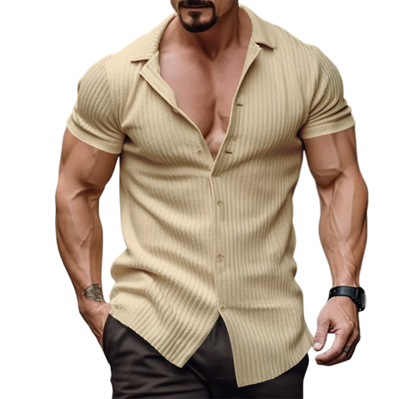 Men's Fashion Casual Vertical Stripe Short Sleeve Lapel Top