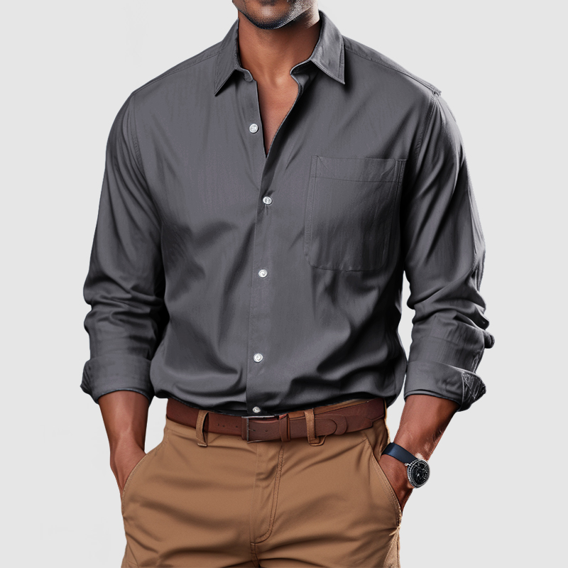 This shirt has a business-casual style element and is made from cotton, which is extremely breathable. This shirt is crafted from wrinkle-resistant cotton. The simple collar and pockets are designed to reflect the wearability of this shirt. This will be a highly utilized shirt in your closet! Whether for outdoor sports, leisure activities or social gatherings, this shirt will keep you elegant and gentlemanly for a long time.