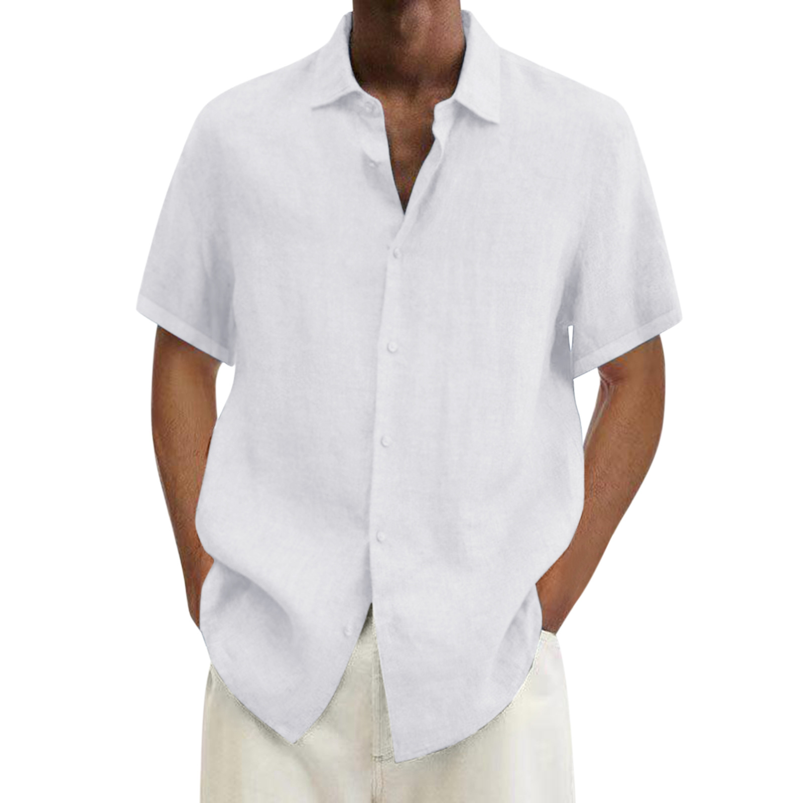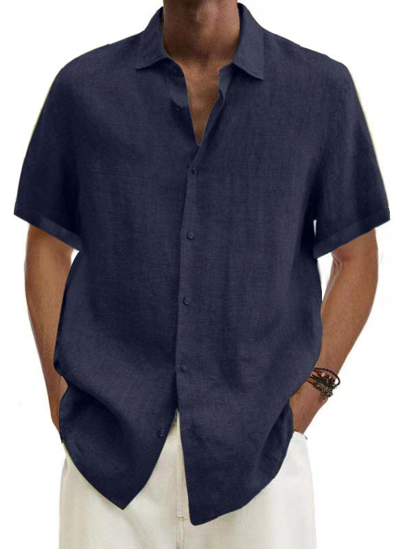 Men's solid cotton short sleeve loose lapel shirt