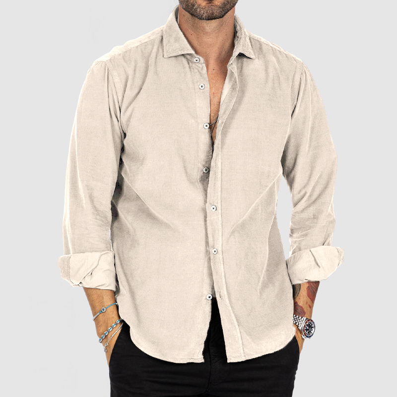 This shirt has a business-casual style element and is made from cotton, which is extremely breathable. This shirt is crafted from a cotton corduroy fabric. The striped texture paired with the lightweight fabric makes this shirt unique. Perfect for everyday wear and is soft and cozy. Whether for outdoor sports, leisure activities or social gatherings, this shirt will keep you elegant and gentlemanly for a long time.