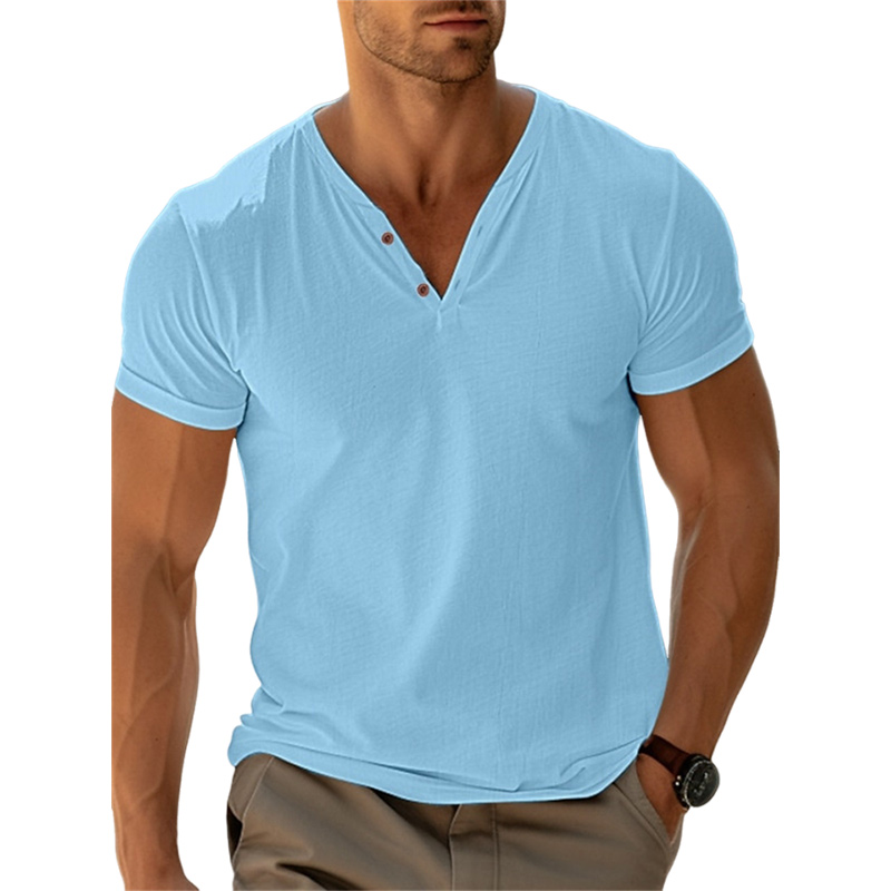 Mens Summer Casual Beach Solid Color T Shirt
