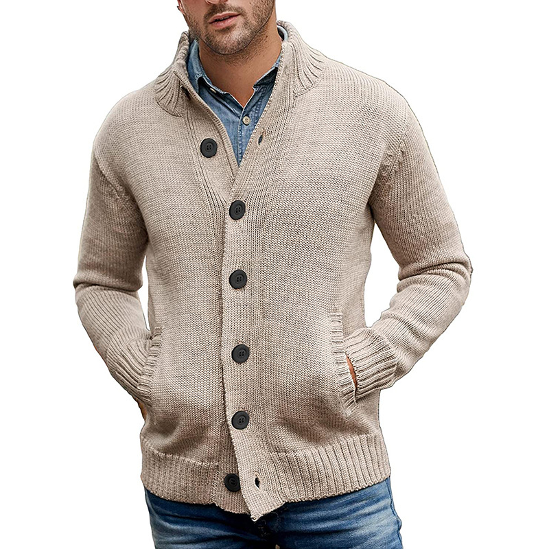 Men's sweater cardigan pure color single breasted knit autumn and winter jacket coat