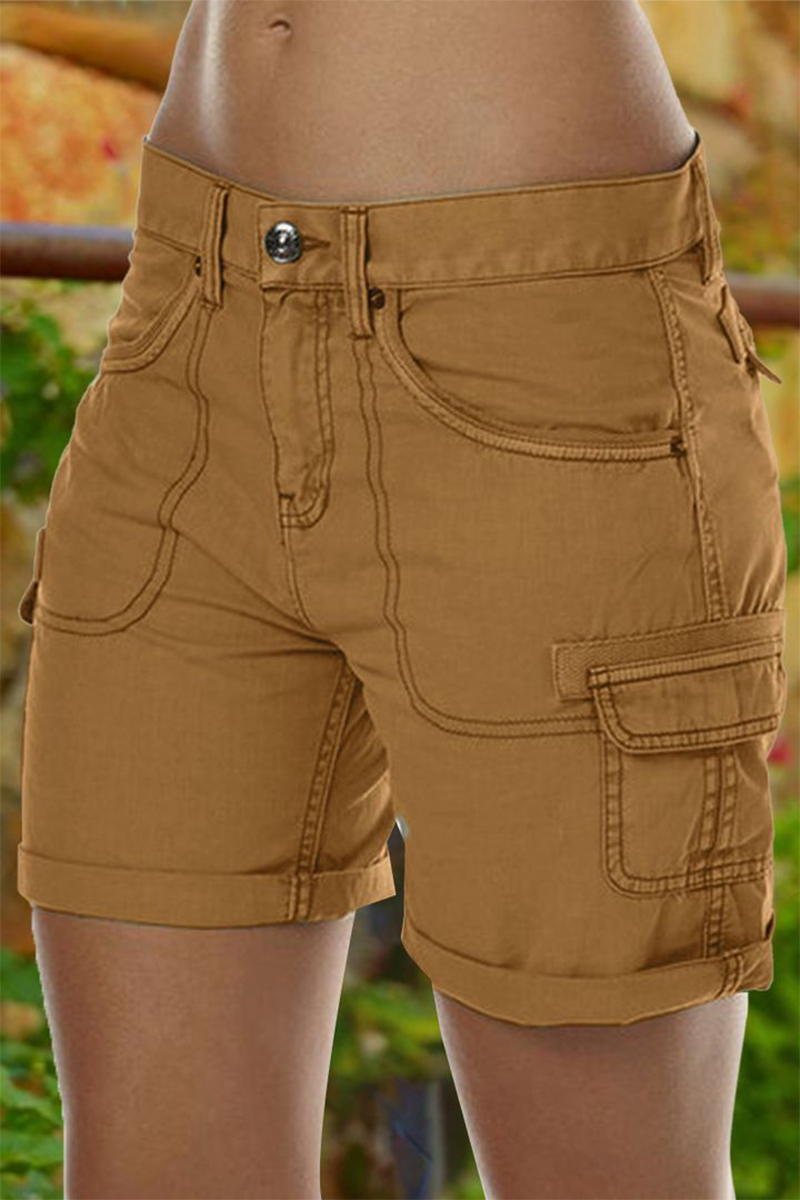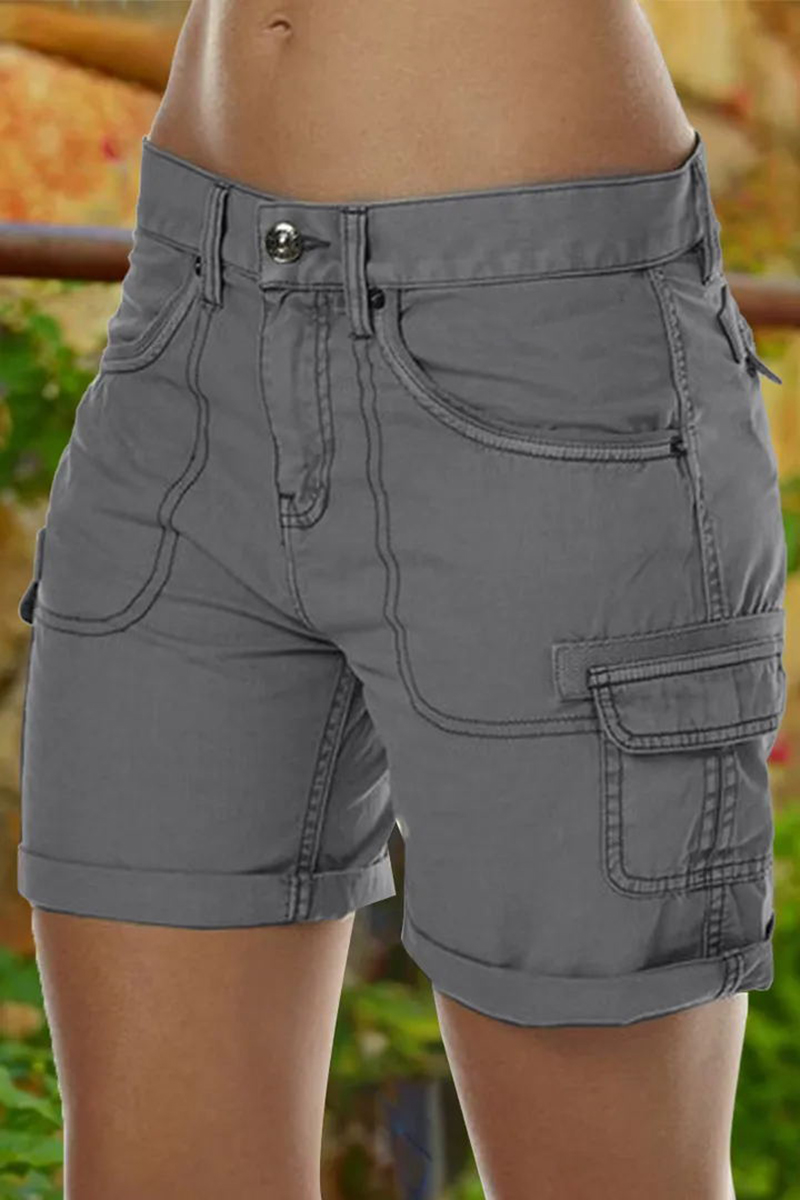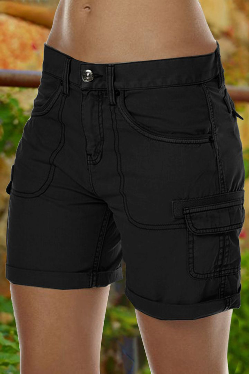 Solid Stitch Trim Roll Hem Shorts