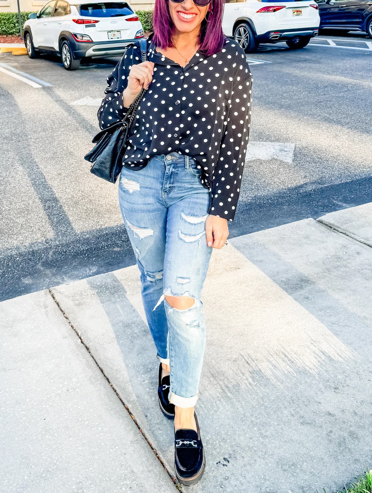 Add a touch of classic style to your wardrobe with our Classic Button Up Polka Dot Blouse. The relaxed fit and unlined design make it comfortable and lightweight, while the button-front closure adds a timeless detail. Perfect for any occasion.