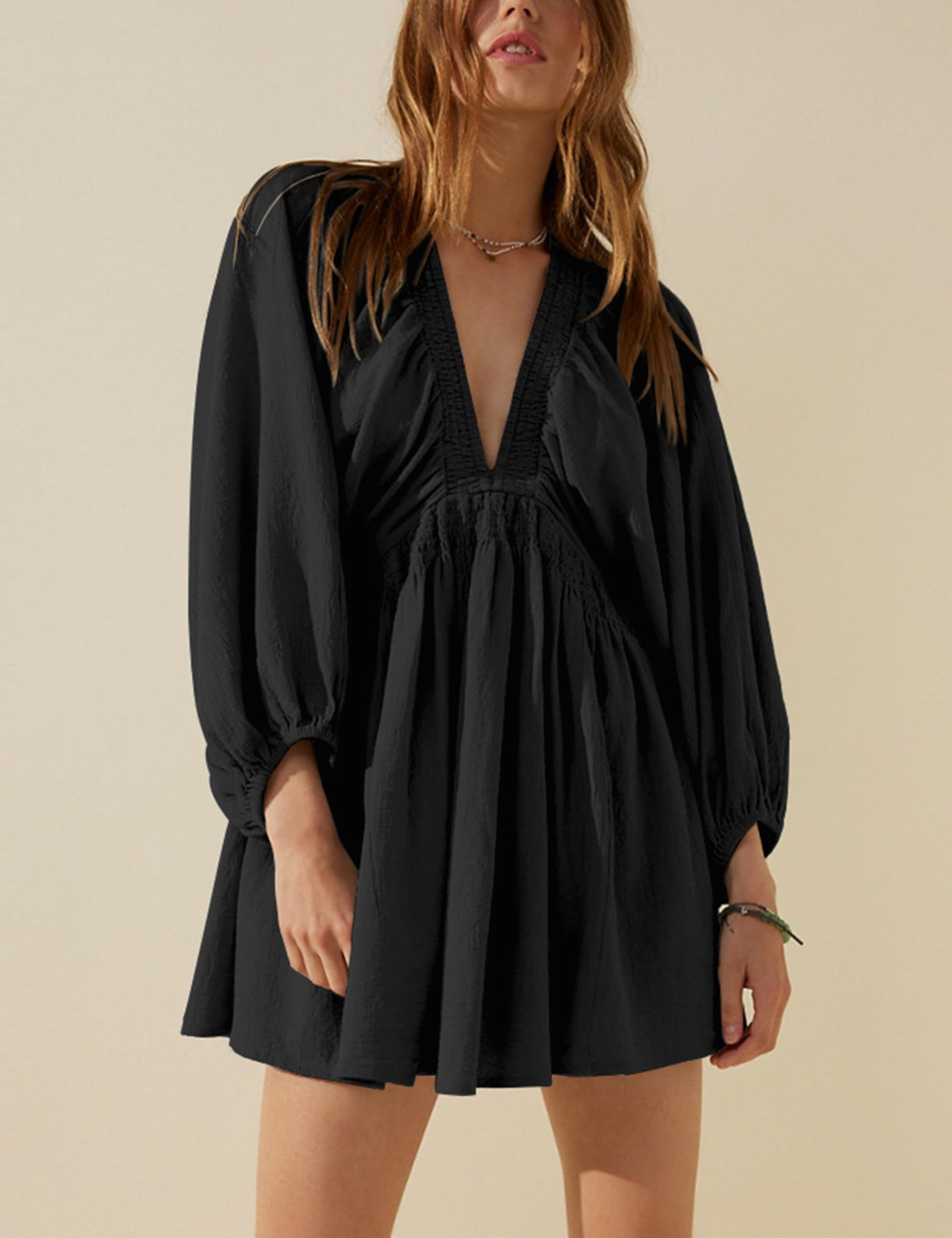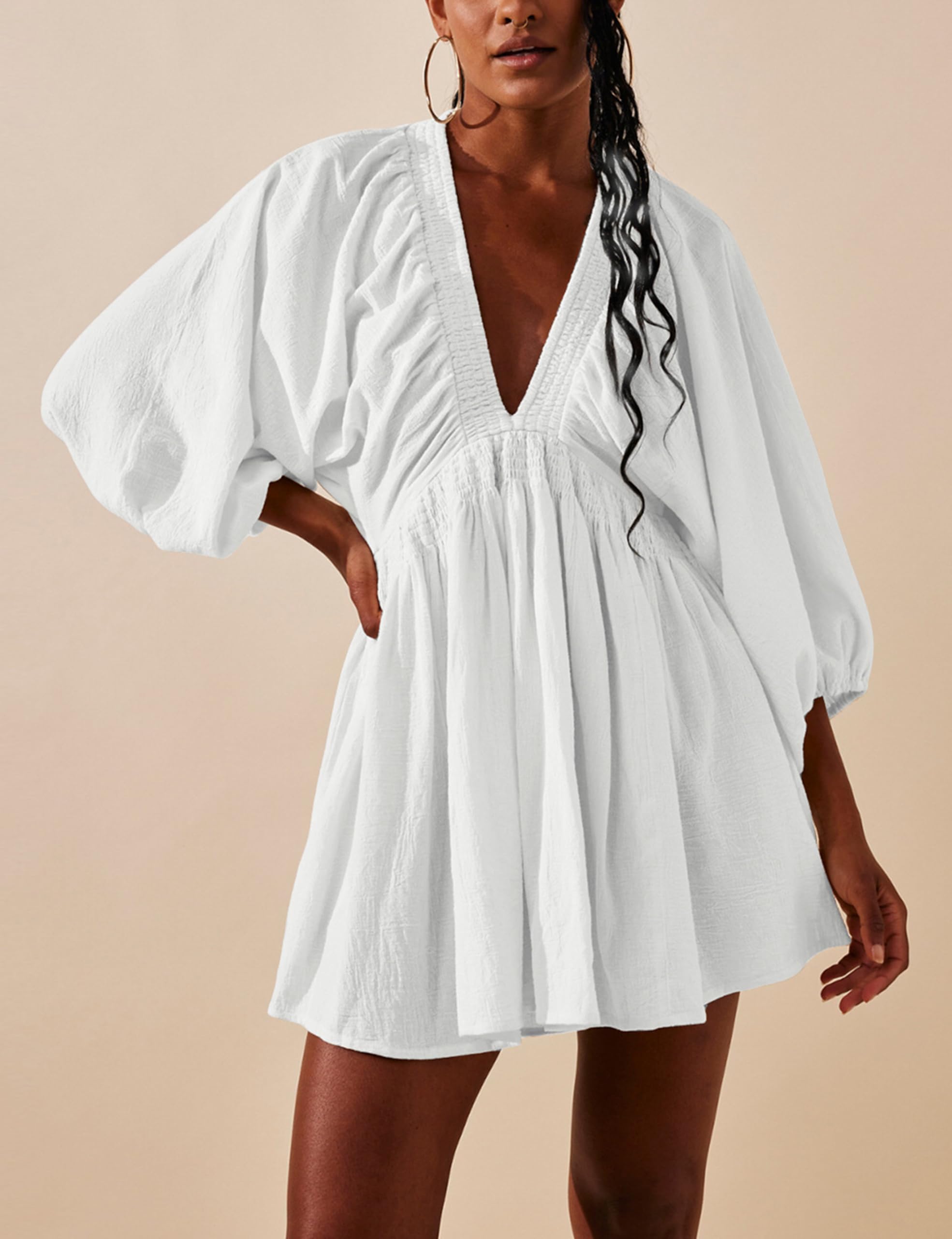 The stylish design of our pleated tunic dress makes this mini dress a versatile piece that can look stylish and sexy at home or out at a party.